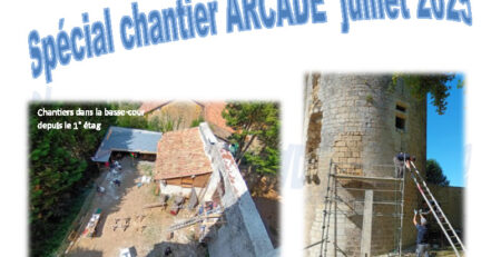Spécial Chantier ARCADE JUILLET 25 Session « taille de pierres » d’une voûte Session de cristallisation de murs derrière l’église ...