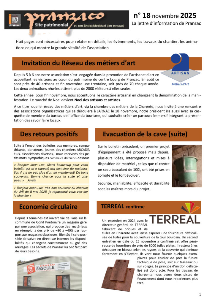 Lettre d'information de Pranzac Les dates des animations de 2026 Changement de dénomination Commande groupée de vin de Pranzac Un...