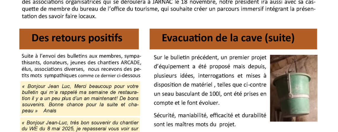 2 septembre; Réunion de rentrée Permanences d’été de la maison du patrimoine 6 septembre: reprise du chantier au château ...
