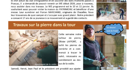 Dates à retenir des Secrets de Pranzac et parole d’orgue Bilan de l’Assemblée Générale 2025 Découverte des châteaux du secteur Reprise des travaux...