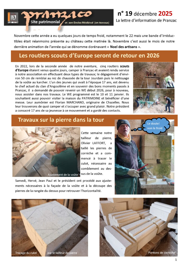 Pranzac; « commune à découvrir » Temps consacré aux travaux au 1er trimestre 2025 Eglise St Cybard; du rouge brun 29 mars; Visite...